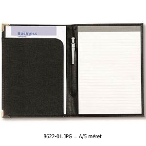A/4-es műbőr konferencia mappa fém sarokkal, 50 lapos jegyzettömbbel és praktikus belső zsebekkel. Fekete és sötétkék színben, valamint A/5 méretben (8622-01.JPG) is kapható.